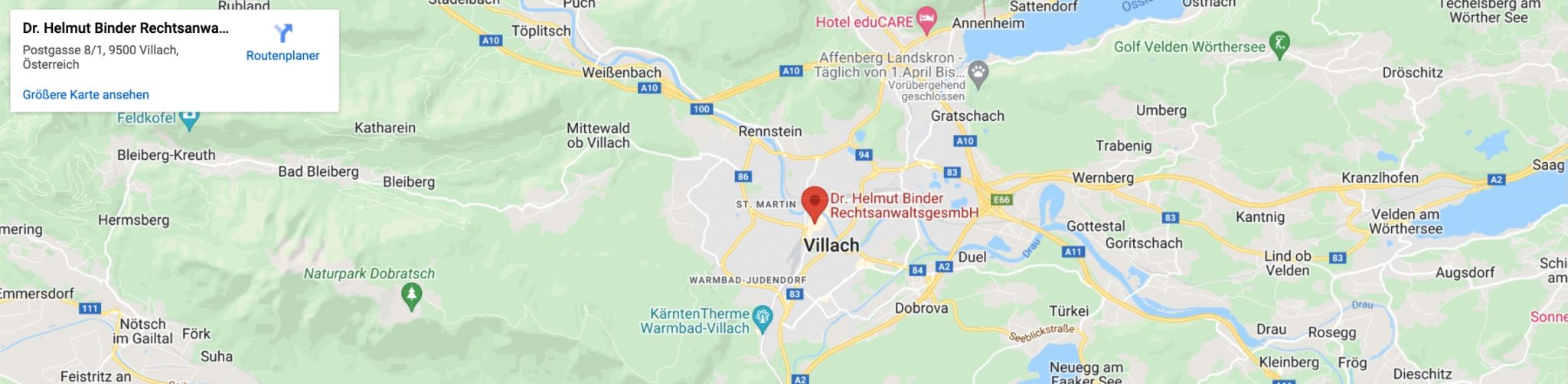 Sie haben eine konkrete Rechtsfrage? Gerne berate ich Sie persönlich im Rahmen eines Erstberatungsgespräches in meiner Rechtsanwaltskanzlei in 9500 Villach, welche sich im Zentrum von Villach, in der Postgasse 8/1 befindet. Ferner kann ich Ihnen eine gute Erreichbarkeit mit öffentlichen Verkehrsmitteln als auch mit dem eigenen Fahrzeug gewährleisten.